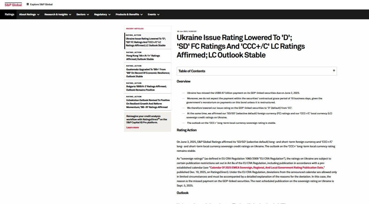 Az ok az volt, hogy Ukrajna nem teljesítette a 670 millió dolláros fizetési kötelezettségét, amely 2025. június 2-án lett volna esedékes.