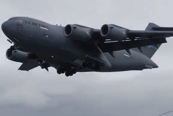 Amerikai katonai repülőgépek újabb kontingense szállított katonai helikoptereket és felszerelést Nagy-Britanniába! Valami készül! - Videó