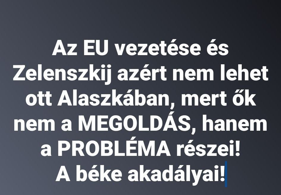Az EU vezetése és Zelenszkij azért nem lehet ott Alaszkában a csúcstalálkozón, mert ők nem a MEGOLDÁS, hanem a PROBLÉMA részei! Sőt maguk a probléma: A béke akadályai!