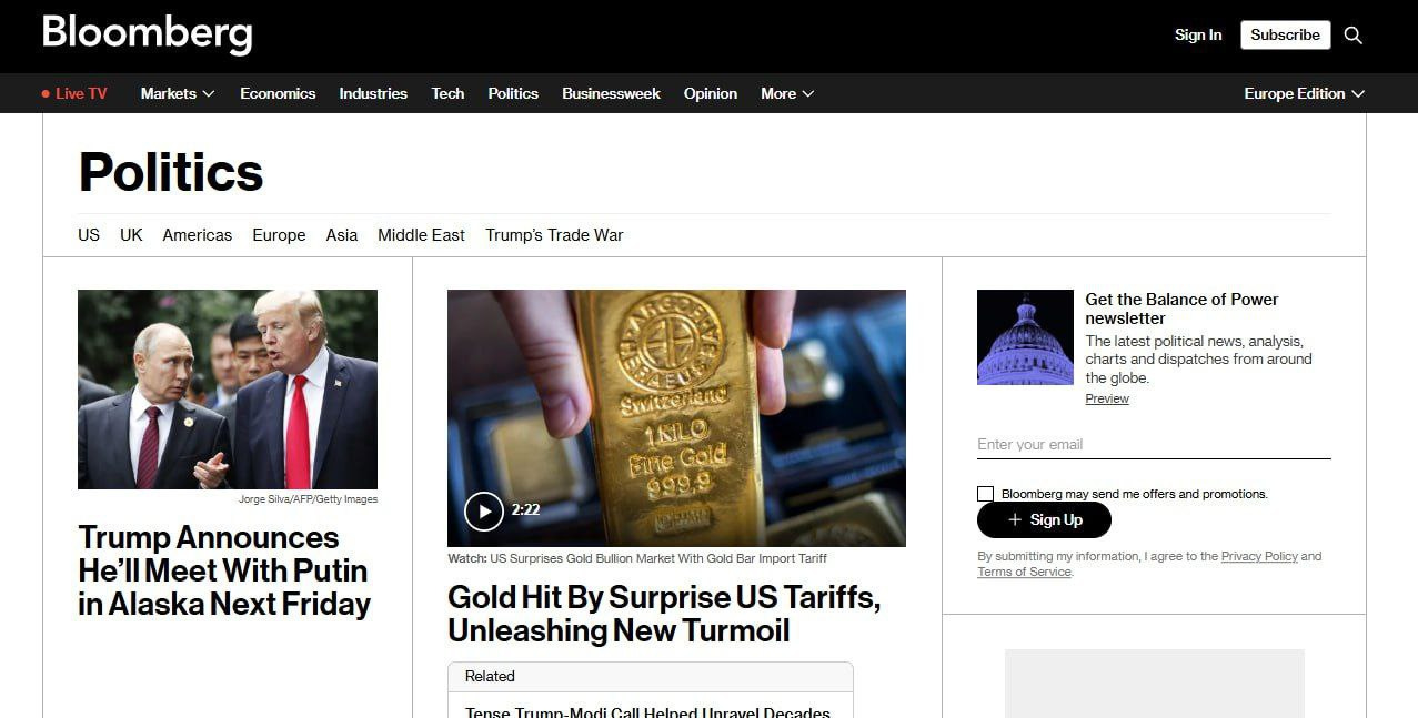 ▪️ Bloomberg: A személyes találkozó Putyinnal kockázatos játék magas tétekkel az USA elnöke számára. A kijevi vezetés attól tart, hogy Trump túl készségesen enged majd Putyinnak.