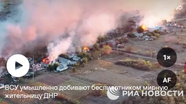 Szeptemberben a RIA Novosti közzétett egy videót, amelyen az ukrán hadsereg egy drónnal megöl egy nőt a Donyecki Népköztársaság (DPR) Shandrigolovo nevű falujában.